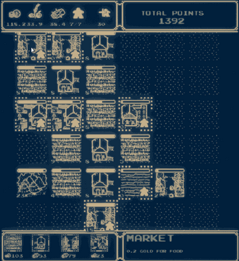 - Market give a lot of gold but in exchange for FOOD! (Production 1 per second. Gather 1,5 per second)
